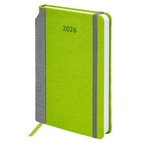 Ежедневник датированный 2026 А5 138x213 мм, BRAUBERG "Mosaic", под кожу, карман для ручки, зеленый, 117111