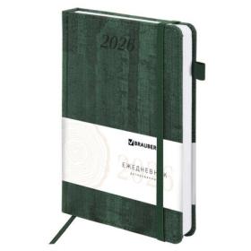 Ежедневник датированный 2026, А5, 138х213 мм, BRAUBERG "Plain", под кожу, резинка, держатель для ручки, темно-зеленый, 117507