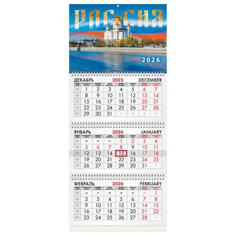 Календарь квартальный на 2026 г., 1 блок, 1 гребень, бегунок, офсет, BRAUBERG, "Великая Россия", 116738
