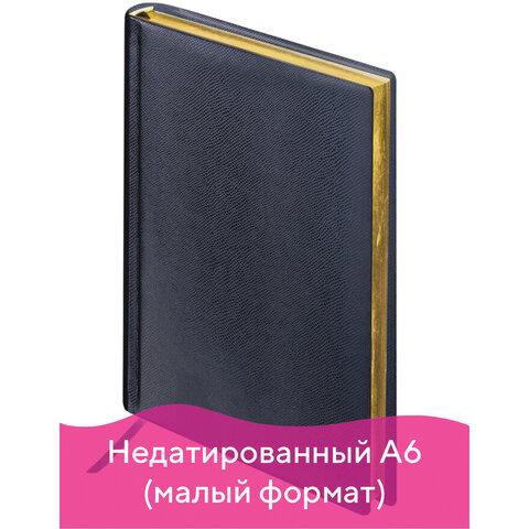 Ежедневник недатированный МАЛЫЙ ФОРМАТ А6 (100х150 мм) BRAUBERG "Select", балакрон, 160 л., темно-синий, 123481