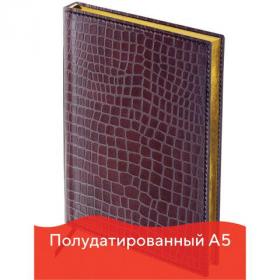 Ежедневник недатированный БОЛЬШОЙ ФОРМАТ (175х247 мм) В5, BRAUBERG "Alligator", под матовую крокод. кожу, 160л, крем.блок, т-корич, 124969
