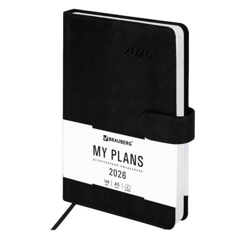 Ежедневник датированный 2026, А5, 138x213 мм, BRAUBERG "Select", балакрон, черный, 117086