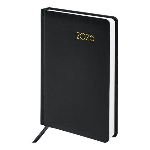 Ежедневник датированный 2026 145х215 мм, А5, STAFF, обложка бумвинил, черный, 117307
