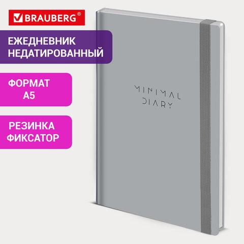Ежедневник недатированный с резинкой А5 145х203 мм, BRAUBERG, твердый, 160 л, "Minimal", серый, 116302