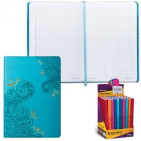 Блокнот А5 (148x218 мм), BRAUBERG "Metropolis", балакрон, 80 л., резинка, клетка, зеленый, 111583
