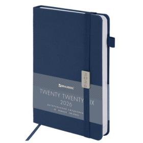 Ежедневник датированный 2026, А5, 150x213 мм, BRAUBERG "Up", под кожу, софт-тач, держатель для ручки, синий, 117118