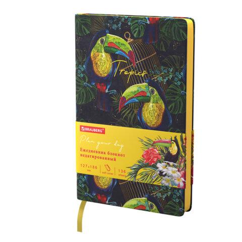 Ежедневник недатированный B6 (127х186 мм), BRAUBERG VISTA, под кожу, гибкий, 136 л., "Toucan tropics", 112114