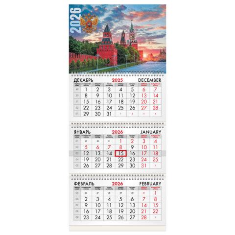 Календарь квартальный 2026 г., 3 блока, 3 гребня, бегунок, офсет, BRAUBERG EXTRA MINI, "Россия", 116783