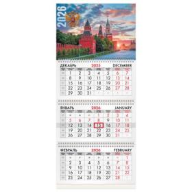 Календарь квартальный на 2026 г., 3 блока, 3 гребня, бегунок, мелованная бумага, BRAUBERG, "Россия", 116788