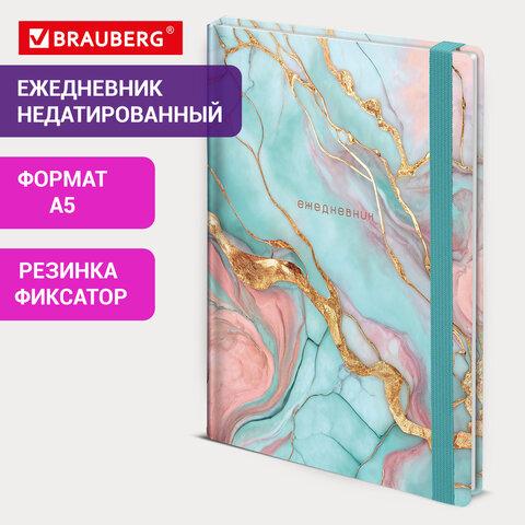 Ежедневник недатированный с резинкой А5 145х203 мм, BRAUBERG, твердый, фольга, 128 л., "Marble", 116292
