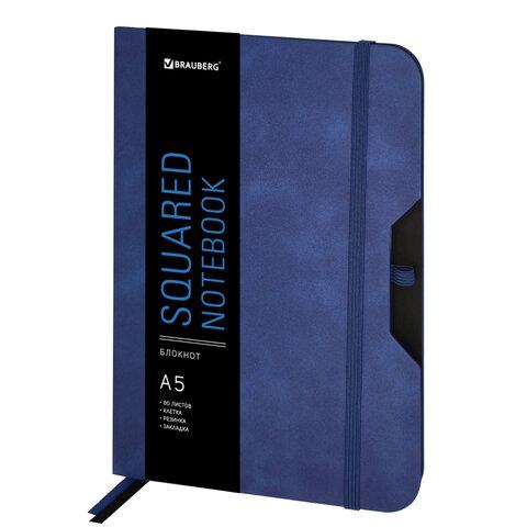 Блокнот А5 (162х218 мм), BRAUBERG "NOTE", под кожу софт-тач, с резинкой, 80 л., клетка, синий, 113438