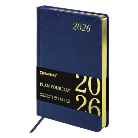 Ежедневник датированный 2026 145х215 мм, А5, STAFF, обложка бумвинил, синий, 117305