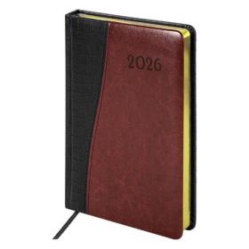 Ежедневник датированный 2026, А5, 138x213 мм, BRAUBERG "Cayman", под кожу, черный / коричневый, 117045