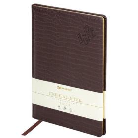 Еженедельник недатированный МАЛЫЙ ФОРМАТ А6 (95х155 мм) BRAUBERG "Alligator", кожзам, 64 л., коричневый, 126183