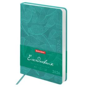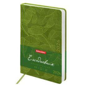 Ежедневник датированный 2026 А5 138x213 мм, BRAUBERG "Foliage", под кожу, гибкий, зеленый, 117128