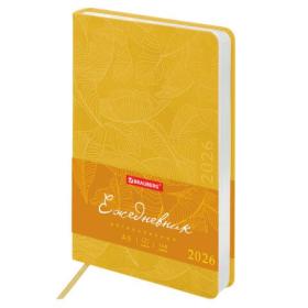 Ежедневник датированный 2026 А5 138x213 мм, BRAUBERG "Foliage", под кожу, гибкий, желтый, 117130
