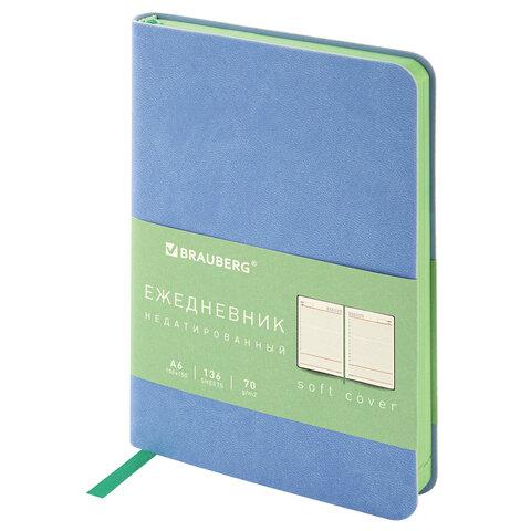Ежедневник недатированный МАЛЫЙ 100х150 мм А6 BRAUBERG "Metropolis Mix", под кожу, 136 л., голубой, 113307