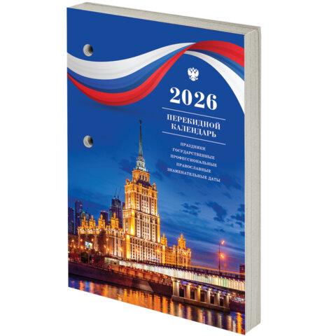 Календарь настольный перекидной на 2026 г., 160 л., блок газетный, 1 краска, STAFF, "РОССИЯ", 117424