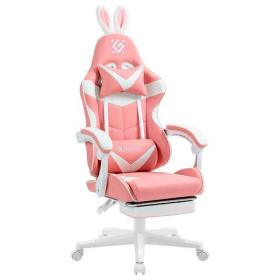 Кресло компьютерное DEFENDER "Irifi", 2 подушки, подставка для ног, экокожа, розовое / белое, 64042