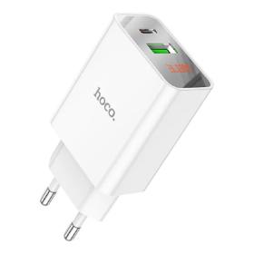 HOCO Зарядное устройство с дисплеем Hoco 18Вт, 3А, QC3.0 / PD, 1xUSB, 1XType-C, C100A, белый, коробка