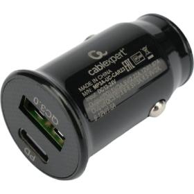 Cablexpert Автомобильное зарядное устройство 20Вт, 3А, QC3.0 / PD, 1xUSB, 1xType-C, черный, пакет (MP3A-UC-CAR23)