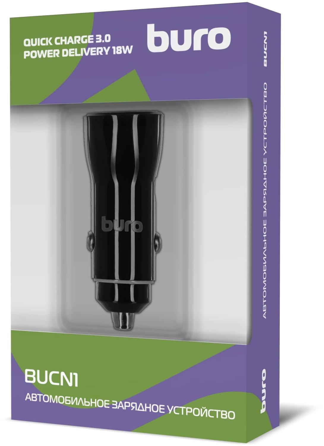 Автомобильное зар. / устр. Buro BUCN1 18W 3A (PD+QC) USB-C / USB-A универсальное черный (BUCN18P110BK)
