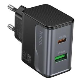 HOCO Зарядное устройство Hoco 30Вт GaN, 3А, QC3.0 / PD, 1xUSB, 1xType-C, CS23A, черный, коробка