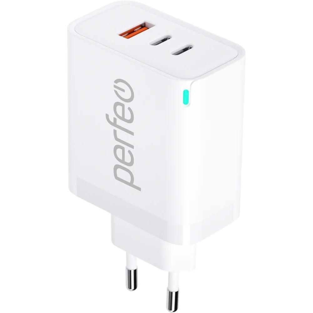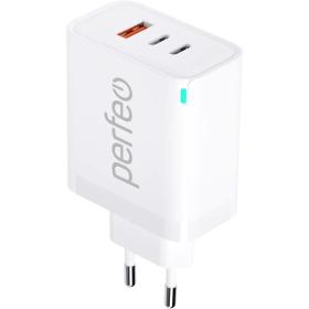 PERFEO Сетевое зарядное устройство с тремя разъемами USB-A+2xTYPE-C, GaN, 65W, белый (I4655)