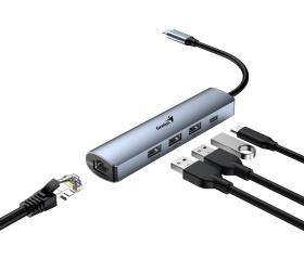 USB HUB UH-545 USB3.0 с Ethernet RJ45, гигабитным Ethernet RJ45 x 1, портом питания USB-C (5 В 3 А) x 1, портами передачи данных USB-A 3.0 x 3