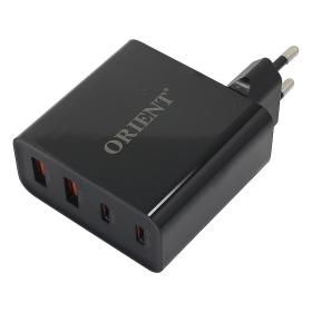 ORIENT PU-A100WL, Сетевое зарядное устройство с функцией быстрой зарядки, мощность 100Вт, Quick Charge 3.0+Power Delivery, выходы: 2xUSB-A + 2xType-C / PD, DC 5 / 9 / 12 / 15 / 20В, цвет черный (33168)