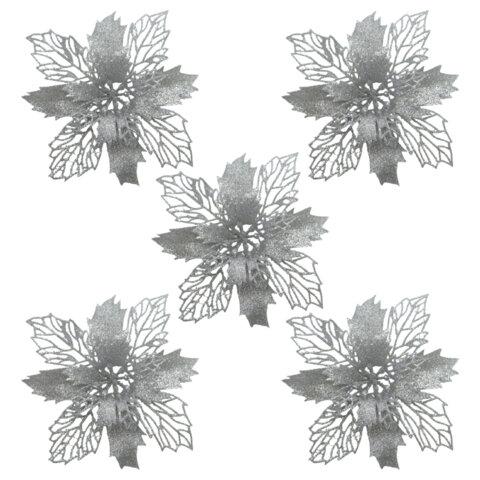 Украшение ёлочное КОМПЛЕКТ 5 шт. "Цветок с клипсой", диаметр 15 см, ПВХ, серебро, ЗОЛОТАЯ СКАЗКА, 592604