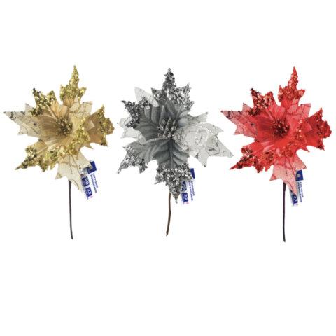 Украшение елочное 1 шт., "Цветок", диаметр 22 см, длина 20 см, ассорти 3 дизайна, ЗОЛОТАЯ СКАЗКА, 592420