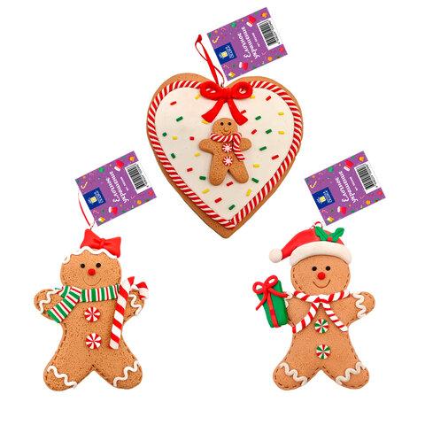 Украшение елочное (1 шт.) "Пряник", 12х9 см, полимерная глина, ассорти 3 дизайна, ЗОЛОТАЯ СКАЗКА, 592408