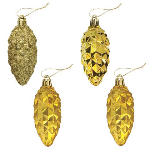 Украшение ёлочное "Шишки" 4 шт., 9 см, пластик, золотистые, ЗОЛОТАЯ СКАЗКА, 590898