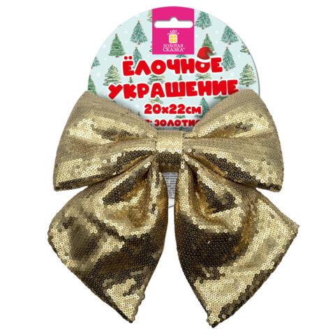 Украшение ёлочное 20х22 см, "Бант с пайетками", полиэстер, золото, ЗОЛОТАЯ СКАЗКА, 592479