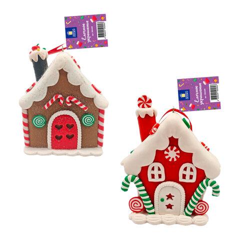 Украшение елочное (1 шт.) "Пряничный домик", 9х10 см, полимерная глина, ассорти, ЗОЛОТАЯ СКАЗКА, 592409