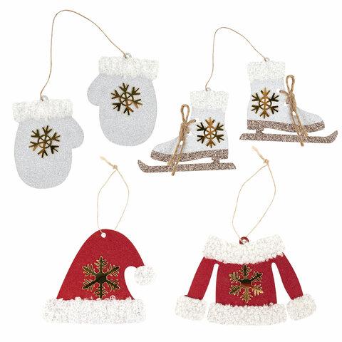 Украшение ёлочное "Варежки", 1 пара, 10 см, полиэстер, пакет с европодвесом, ЗОЛОТАЯ СКАЗКА, 592150