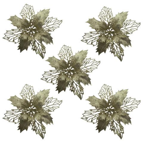 Украшение ёлочное КОМПЛЕКТ 5 шт. "Цветок с клипсой", диаметр 15 см, ПВХ, золото, ЗОЛОТАЯ СКАЗКА, 592603
