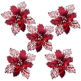 Украшение ёлочное КОМПЛЕКТ 5 шт. "Цветок с клипсой", диаметр 15 см, ПВХ, красный, ЗОЛОТАЯ СКАЗКА, 592605