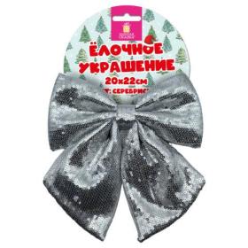 Украшение ёлочное 20х22 см, "Бант с пайетками", полиэстер, серебро, ЗОЛОТАЯ СКАЗКА, 592481