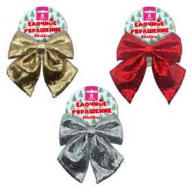 Украшение ёлочное (1 шт.) 20х22 см, "Бант с пайетками", полиэстер, ассорти 3 цвета, ЗОЛОТАЯ СКАЗКА, 592482