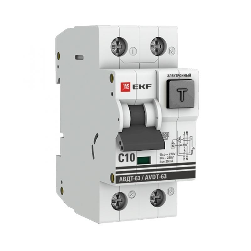 Выключатель автоматический дифференциального тока АВДТ-63 1п+N 10А C 30мА тип A PROxima (электронный) | DA63-10-30e | EKF