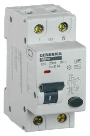 Выключатель автоматический дифференциального тока 2п C 16А 30мА тип AC 6кА АВДТ 32 C16 GENERICA IEK MAD25-5-016-C-30