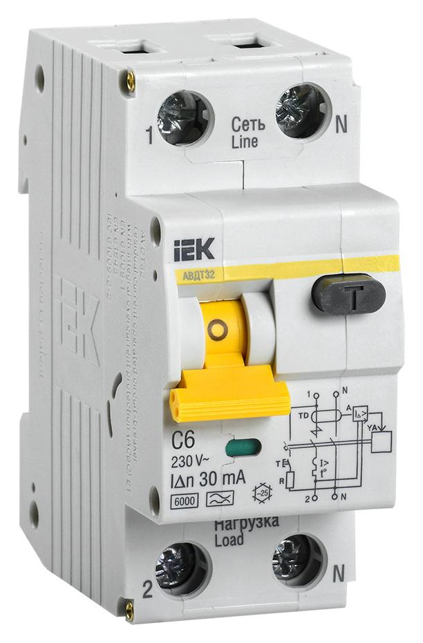 Выключатель автом. дифф. тока IEK MAD22-5-006-C-30 АВДТ 32 6A тип C 6kA 30мА A 1П+Н 230В 2мод белый (упак.:1шт)