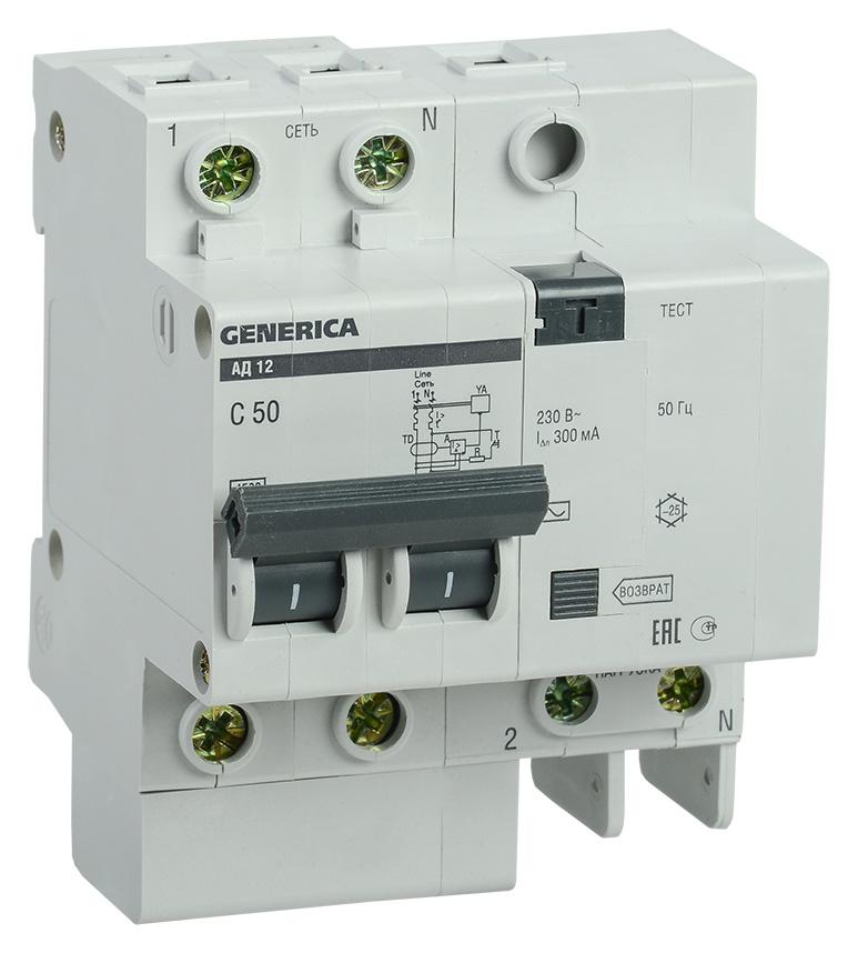 Выключатель автоматический дифференциального тока 2п 50А 300мА АД12 GENERICA IEK MAD15-2-050-C-300