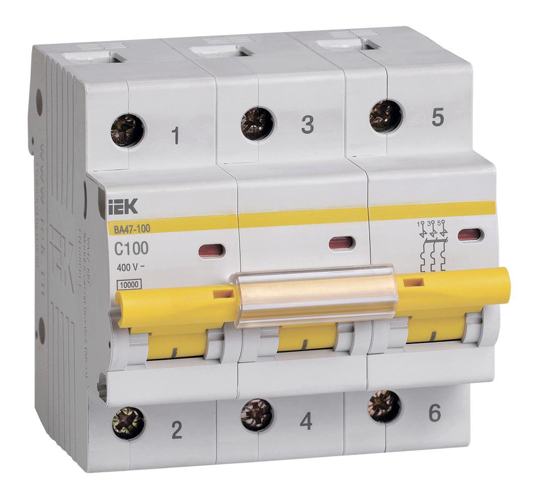 Автоматический выключатель IEK ВА47-100 (MVA40-3-100-C) 100A тип C 10кА 3П 400В 4.5 модуля белый (упак.:1шт)