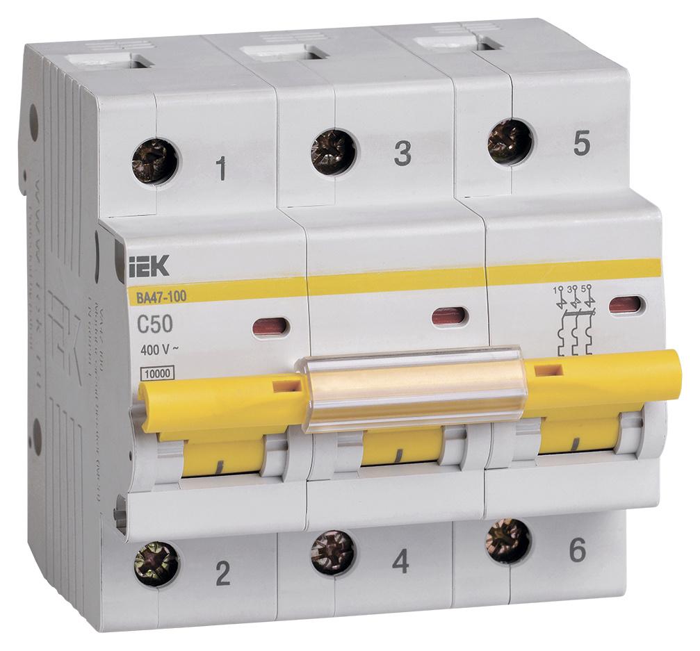 Автоматический выключатель IEK ВА47-100 (MVA40-3-100-C) 100A тип C 10кА 3П 400В 4.5 модуля белый (упак.:1шт)