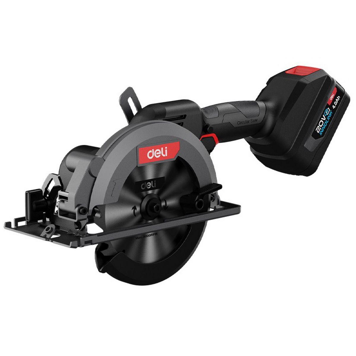 Циркулярная пила аккумуляторная Deli DE-YJ20-1D4 (2 АКБ*4Ач + ЗУ, 20V, 6900об / мин, диаметр диска 150мм, диск в комплекте, сумка)