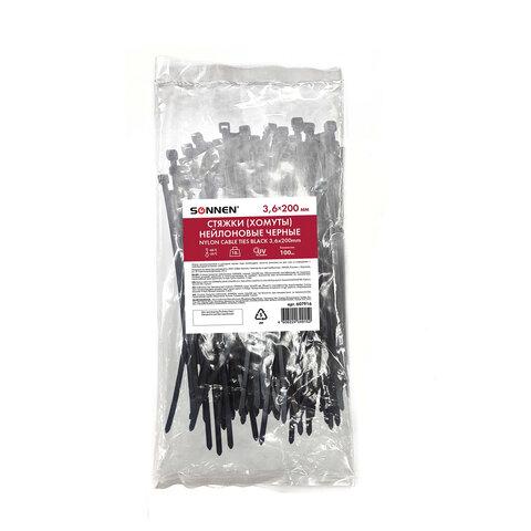 Стяжка (хомут) нейлоновая сверхпрочная POWER LOCK, 3,6х200 мм, КОМПЛЕКТ 100 шт., черная, SONNEN, 607916