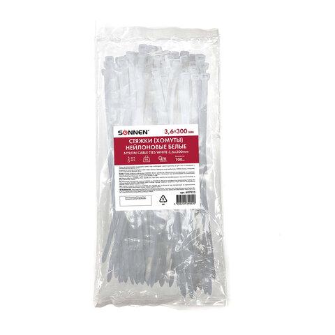 Стяжка (хомут) нейлоновая сверхпрочная POWER LOCK, 3,6x300 мм, КОМПЛЕКТ 100 шт., белая, SONNEN, 607923